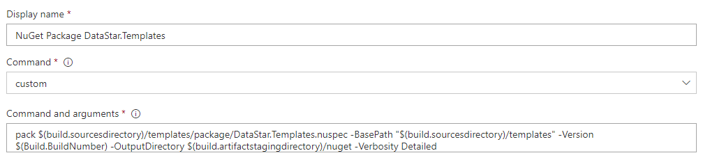 B) Add a nuspec file. Commit a DataStar.CmdLine.nuspec alongside the templates (a package folder is conventional):